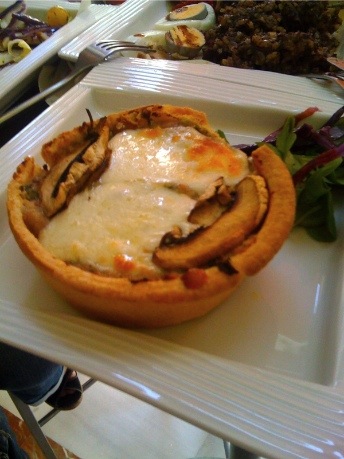 Un quiche de champiñones, ternera y mozarella extraordinario.